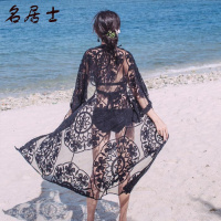 巴厘岛度假沙滩比基尼泳衣开衫性感镂空蕾丝长袖黑色长款罩衫4820