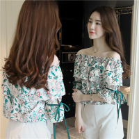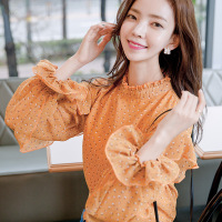 薇侣2017新品荷叶边雪纺衫长袖秋装新款女装修身显瘦韩版简约
