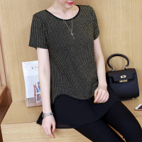 薇侣2017新品实拍大码女装夏装新款宽松短袖t恤女上衣中长款假两件雪纺衫8029