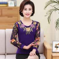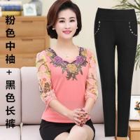 妈妈春装打底衫长袖中年女装雪纺衫中老年妇女夏装T恤针织两件套