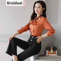 Kruidvat夏装2017新款女装韩版时尚条纹显瘦大码雪纺衫阔腿裤两件套