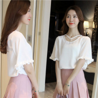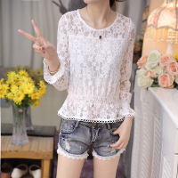 2017新款2017夏季新款女装蕾丝衫女夏长袖透视雪纺衫蕾丝上衣百搭休闲宽松