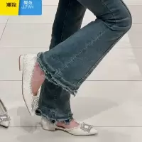 聚范2024年高跟鞋女新款细跟水钻方扣尖头小香风女鞋白色网红单鞋