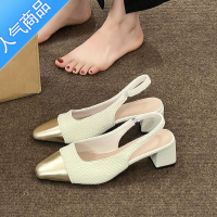 SUNTEK包头凉鞋女款夏季2023新款中高跟尖头方跟单鞋小香风气质玛丽珍鞋
