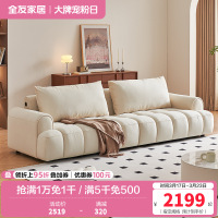 全友家居奶油风泡芙布艺沙发客厅2024新款猫抓绒布直排沙发