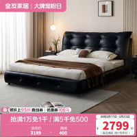 全友家居 真皮艺床意式极简风头层牛皮软包主卧室双人大床