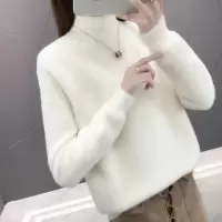 白色半高领毛衣女秋冬新款宽松外穿慵懒风洋气内搭打底衫上衣ins
