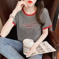 条纹T恤女2021夏季新款韩版宽松显瘦圆领短袖女上衣潮