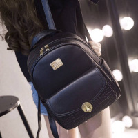 2017新款新品韩版双肩包学院风潮女包包休闲中学生书包女士pu皮质旅行背包大容量旅行背包男潮黑色