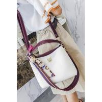 女包包2017新款简约韩版单肩百搭斜跨包休闲丝巾包撞色水桶包
