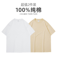 [买1送1]重磅纯棉白色正肩短袖T恤女男夏宽松半袖大码纯色上衣