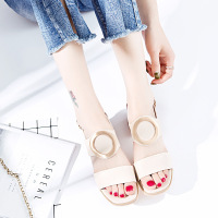 2017夏新款百搭时尚女式凉鞋中跟粗跟气质优雅一字扣简约性感女鞋