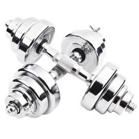 哑铃男士可随意拆卸哑铃30kg20kg15kg盒装电镀哑铃家用健身器材银色