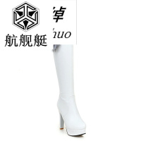 长靴女秋冬季防水台高跟过膝靴女单靴粗跟厚底高筒靴骑士靴女鞋子白色40大码订做加绒