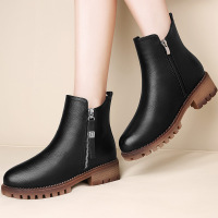 2017冬季新款真皮女靴英伦风学生百搭粗跟马丁靴女中跟短靴加绒保暖女靴