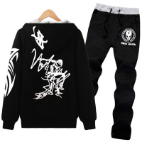 丹杰仕秋冬款鬼步骷髅头时尚印花两件套男女加绒加厚保暖连帽青少年嘻哈街舞班服团队服运动套装