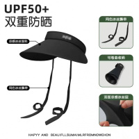 新款空顶防晒帽女夏季防紫外线加大帽檐骑车遮阳帽黑色冰丝太阳帽