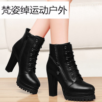 盾狐马丁靴潮女短靴2017新款秋冬季女鞋粗跟防水台高跟鞋女士皮鞋