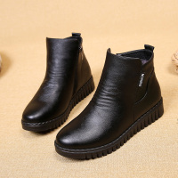 真皮粗跟短靴女冬季软底加绒妈妈皮鞋防滑中跟复古舒适女棉靴