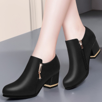 百搭粗跟软皮棉鞋女款中年妈妈鞋秋冬季皮鞋加绒保暖短靴