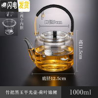 三维工匠玻璃煮茶壶泡茶壶可高温加厚家用套装大容量黑茶煮茶器电陶炉银壶 黑平玉光提梁壶茶具