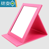 敬平高清PU皮革台式学生女生宿舍公主梳妆便携随身折叠化妆镜子大小号 大号 玫红鳄鱼纹(镜面加厚)便携式用镜