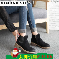 品牌2017新款秋冬短靴女新款圆头女靴子大码金属饰扣马丁靴女复古粗跟骑士靴黄色