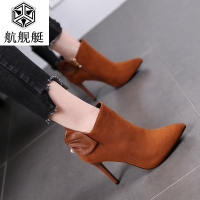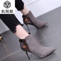 细高跟短靴女2017秋冬新款女靴蝴蝶结侧拉链尖头马丁靴细跟高跟鞋