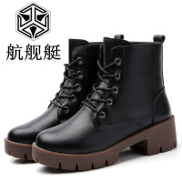 2017冬季新款真皮女靴英伦风学生百搭粗跟马丁靴女中跟短靴加绒保暖女靴
