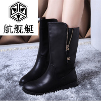 2017秋冬季新款中筒靴女圆头中靴底跟平底雪地靴保暖女靴子女鞋潮黑色