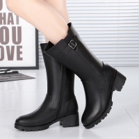 冬季中筒靴女中靴全真皮高跟马丁靴女靴子春秋粗跟单靴子