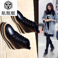 2017秋冬新款女靴街头潮流系带马丁靴厚底松糕跟短靴英伦风靴子女
