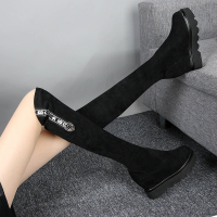 品牌欧洲站2017秋新款瘦腿弹力靴圆头厚底松糕套筒高筒靴长靴女靴子潮
