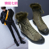 2017秋冬新款平底马丁靴毛毛短靴女韩版百搭复古棉鞋厚底松糕女靴