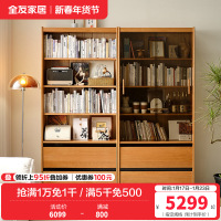 松木书柜全实木两三书柜组合带玻璃简约现代收纳书橱柜