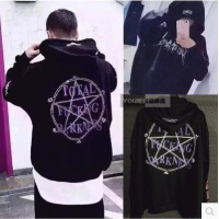 秋季套头情侣男生百搭嘻哈潮男戴帽运动帽衫连帽卫衣男士学生外套六芒果卫衣黑色