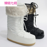 明星杂志款欧美女士太空靴滑雪白色潮防滑雪地靴中筒保暖毛口鞋