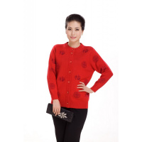 中老年女士福字羊毛开衫加厚羊绒衫大红色毛衣外套本命年妈妈