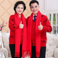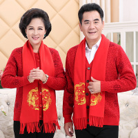 中老年羊毛衫开衫秋冬女装爸爸宽松加厚本命年红色毛衣外套