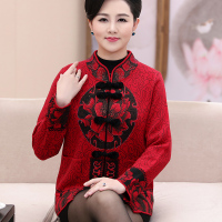 中老年女士妈妈装秋装唐装针织开衫毛衣奶奶装婚礼婚宴本命年外套