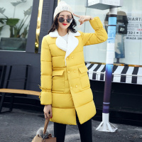 2017冬季新款女装韩版羊羔毛领棉衣双排扣中长款修身显瘦棉服女