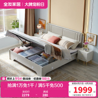 全友家居现代轻奢储物双人床 软靠包欧皮实木框架大床 置物收纳卧室家具高箱床
