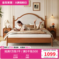 全友家居板式床中古风小户型主卧室家具复古实木床脚软包双人大床