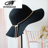 秋冬毛呢帽子女欧美英伦复古卷边小礼帽韩版百搭休闲羊毛爵士帽潮