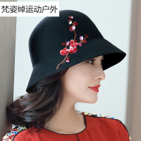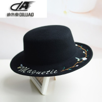 帽子秋冬女羊毛呢平顶礼帽女潮休闲百搭黑色宽檐帽韩版刺绣小蜜蜂