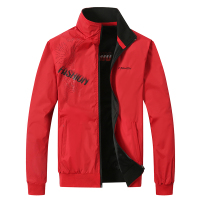 春秋新款男式运动休闲外套青年双面穿立领薄款夹克大红喜庆红衣服