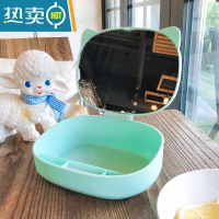 敬平少女心网红桌面台式化妆镜学生宿舍镜子收纳一体便携式可立梳妆镜 绿色猫耳-收纳便携式用镜