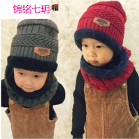 锦铭七玥韩版加厚毛线帽儿童加绒宝宝冬季保暖帽子围巾两件套男孩女孩围脖