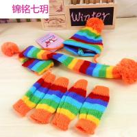 宠物秋冬保暖三件套彩虹毛线帽子围巾护腿 泰迪比熊扮萌外贸热销