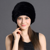 女士包头帽冬季护耳水貂帽子冬毛线帽子韩版貂皮皮草帽子黑色可调节
